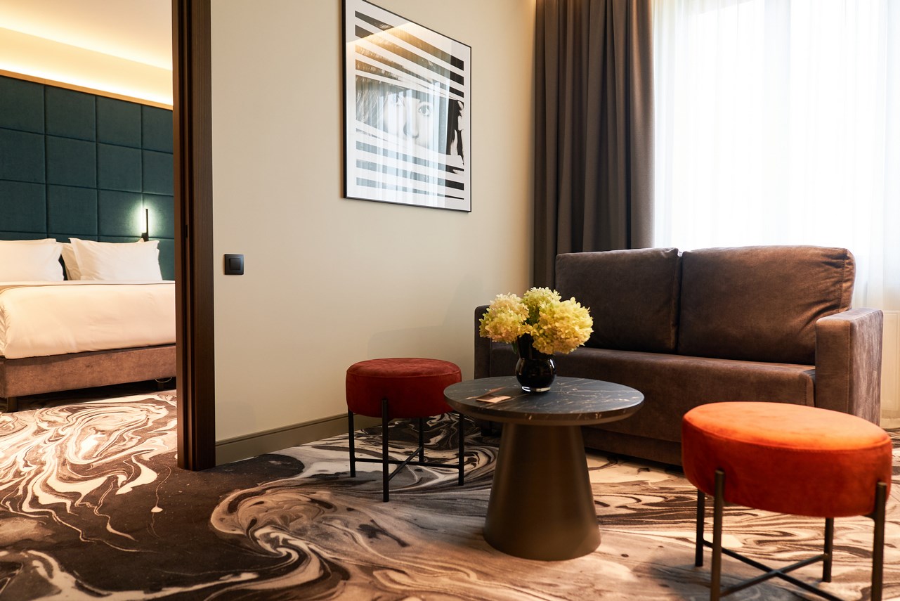 | Джуниор сюит 2-местный Junior Suite | 30 кв.м. | 2 чел. | Мебель (вешалка, зеркало, кресла, кровать двуспальная, прикроватные тумбочки, стол, стулья, шкаф), О... | |